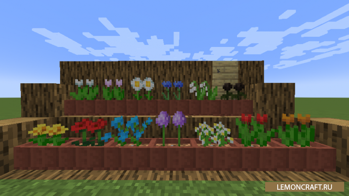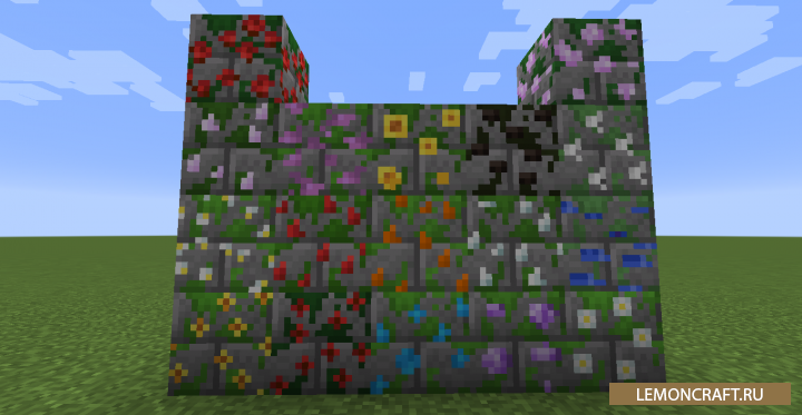 Мод на цветочные чары Floral Enchantment небольшой декоративный мод, который ориентирован на работу с цветами и другой растительностью. Мод добавит в игру различные кусты из которых вы сможете получить лозу. Так же в игре появится большое количество вариантов мшистого булыжника и вместительные цветочные горшки, которые смогут вместить несколько цветов.